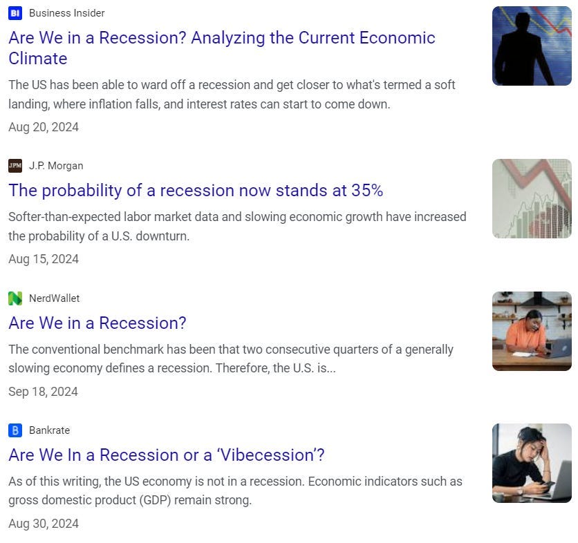 Economists were like, “Holy shit! We pulled off a soft landing! We got through this without a recession!” The Fed had been cutting rates for months while unemployment stayed low and wages continued to grow, outpacing inflation for several months. But somehow, the fucking legacy press COULD NOT STOP asking “Are we in a recession?”