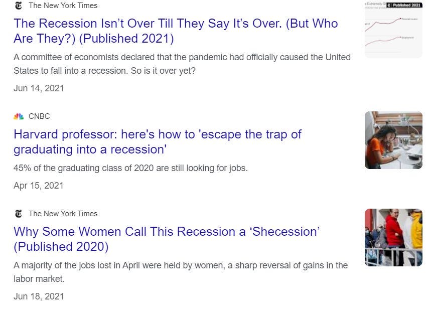 It’s important to note that we were not, in fact, in a recession in 2021. We weren’t really in one in 2020, either. But, boy!, the New York fucking Times really wanted its readers to think we were!