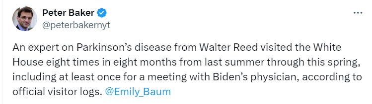 Peter Baker knew exactly what he was doing. He wasn’t saying Joe Biden has Parkinson’s. He was just “asking questions” and letting the public draw conclusions. Conclusions he wanted them to draw.